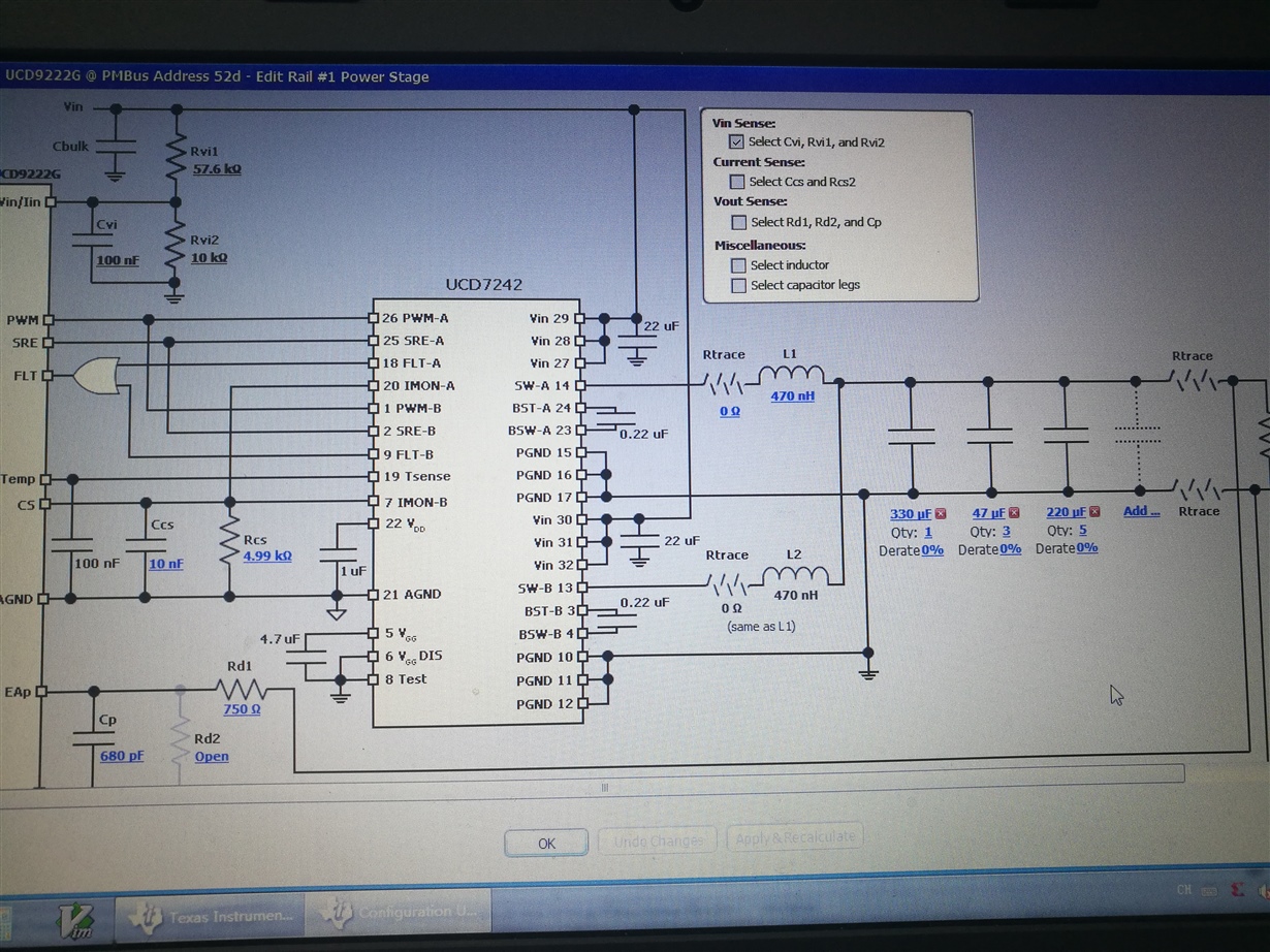 我采用UCD9222WRGZREP+UCD7242RSJT电源组合方案为TMS320C6678的CVDD电源供电,现在在调试电源时,电源 始终没有输出,且报了两个错误OCF、OVF,而实际输出为0V啊,请指导一下为什么会报这两个错啊,谢谢