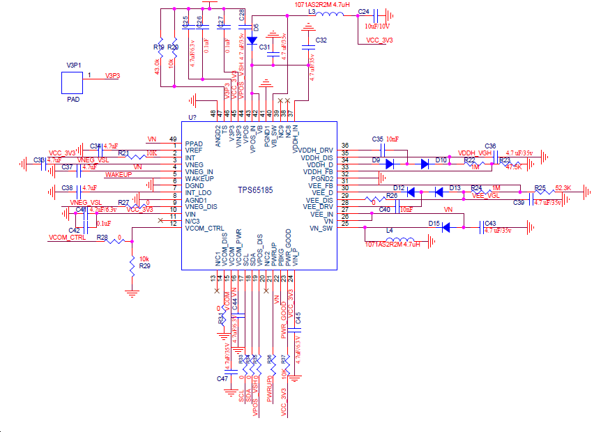 我们自己做的板子, 目前上电 wakeup pwrup 电压时序正常,IIC读写正常。  VB 出来+15.5V    VN只有-4v电压,麻烦各位指点下,谢谢!  下图为65185部分电路图