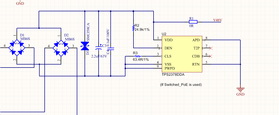 TPS2378的功率等级配置电阻值为63,4R,但是使用负载仪提供负载为0.1A时可以供电,输出正常,若直接加载0.2A的电流,则不能正常供电;若在0.1A负载电流基础上逐步增加负载电流,则可以正常工作,且一直到0.6A时,工作电压和电流均正常,怀疑还是功率分级异常,但是不知道具体原因。不知道该如改善。