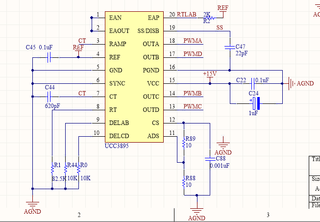 本人设计了一款DCDC电源,并利用RTLAB来进行半实物实验,现在有一个问题就是RTLAB输出的模拟控制信号应该怎样与3895连接。我是直接加到EAP跟GND端,但是不能进行调制。请问我设计的电路方案是否可行?若不可行又应该如何导入到3895中实现移相控制?
