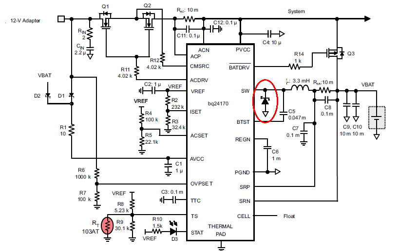 1、如下图,BQ24170 去掉Q1 MOS后,会不会影响Q3的正常开关?