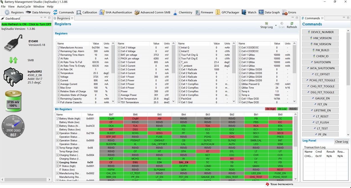 请教各位专家,我使用的是一串5并的18650锂电池,容量10Ah,截止电压3V,上限电压4.2V,目前充放电测试是正常的。但是FCC和RC一直是0,RSOC一直是100%,不知道是什么原因,请问如何解决呢?另外,图2里面的No load Remcap是什么含义?感觉这更像是剩余容量。。