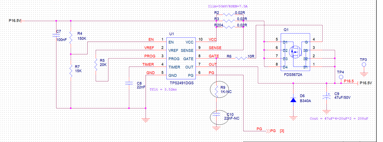 图中输出负载为LED boost恒流源,输出恒定功率为63W,然后我控制开灯的时候总是刚上电后第一次打开灯正常,后面再开Q1后端会出现掉电情况。请大神帮忙分析一下。