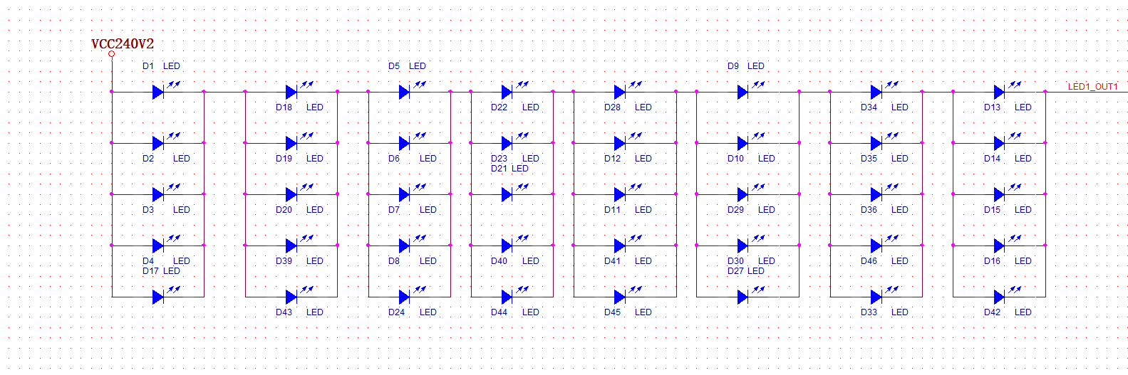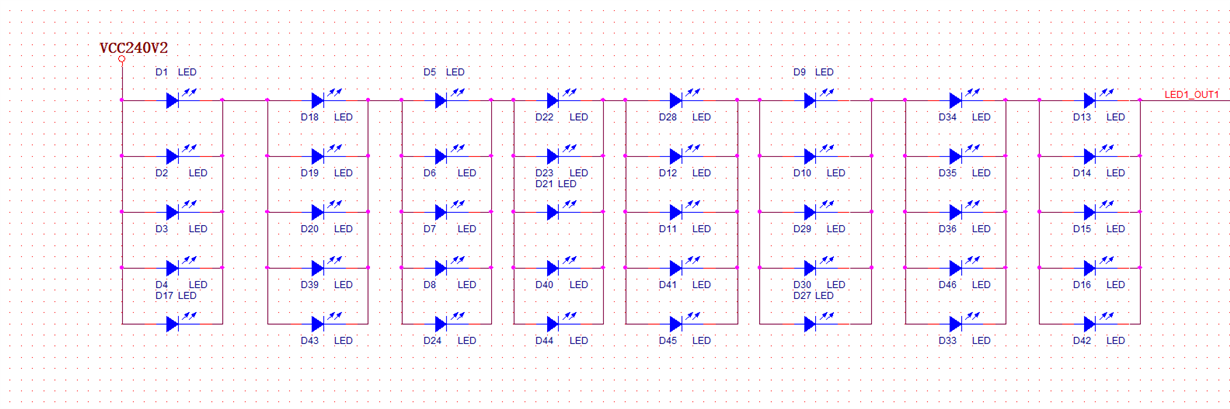 求一个T I LED恒流驱动方案;5V 2A输入,24V 300mA输出。led采用8串5并,如下图