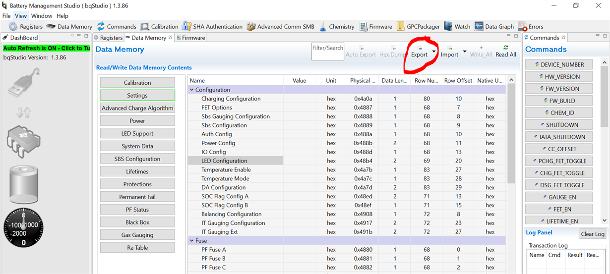 那么在进行开发过程中,为了更好方便TI的FAE技术支持,请在电量计开发中善于使用lbqsudio的og数据功能,同时导出gg文件,和写入读取srec文件。