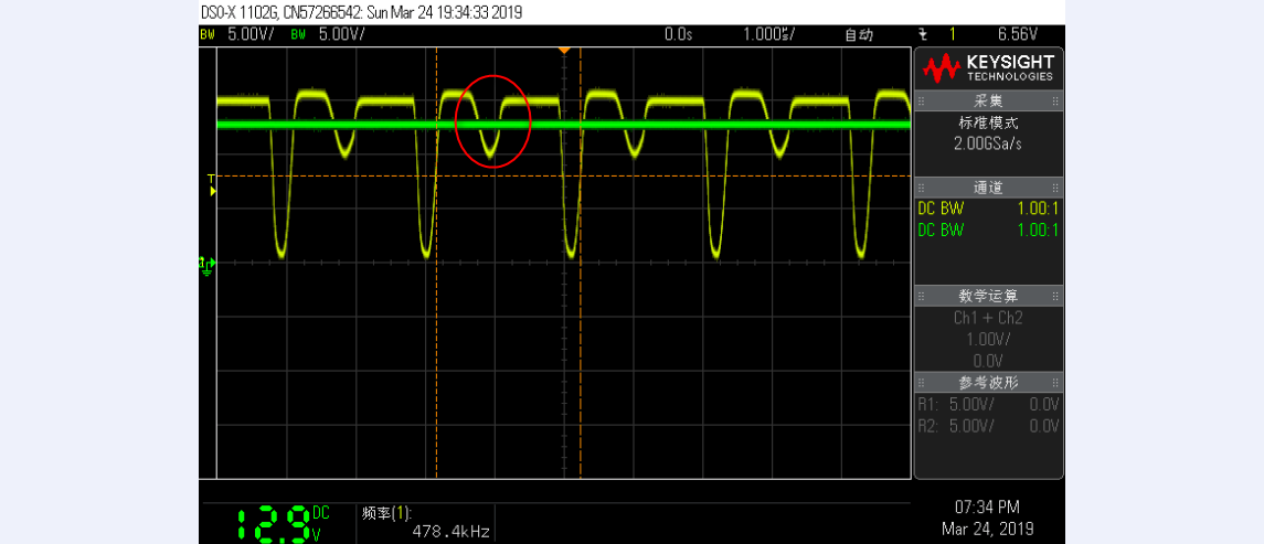 问题1: +12.5v空载时, PH端波形在高端开关导通时有凹陷(见下图),跟环路补偿有关?