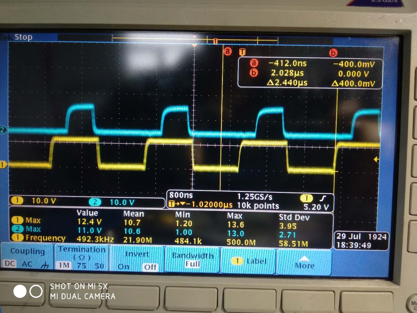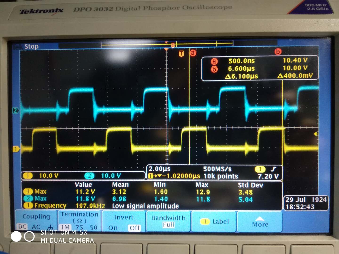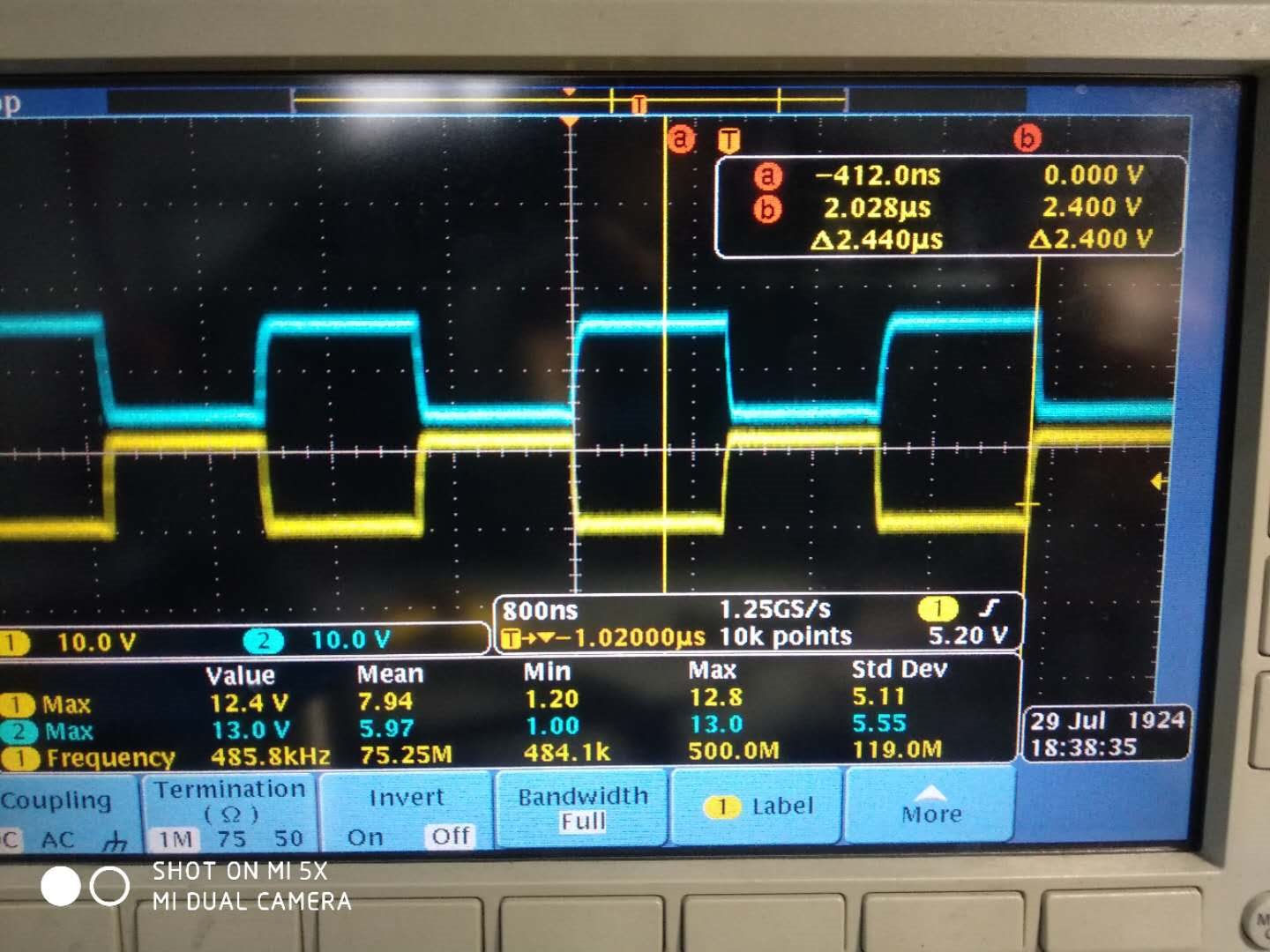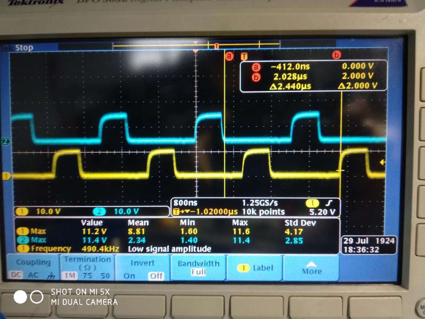 上图黄色是变压器初级绕组,也就是MOS管桥臂中间点波形。当初级MOS管都关断时,波形一直振荡,很异常。
