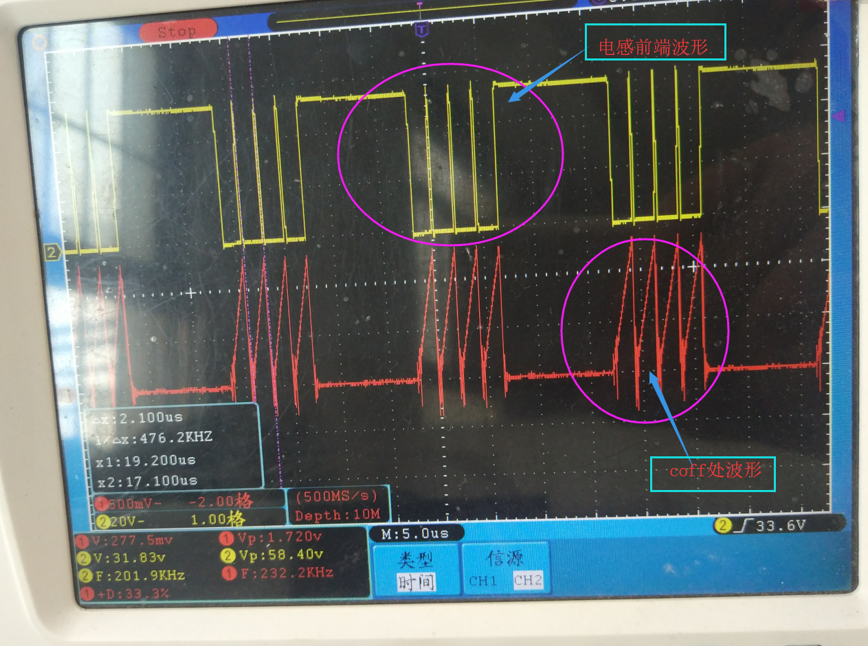 原理图如图片所示。根据图中所示的参数进行设计时。 示波器检测到COFF的波形与D1处的波形如下图所示。