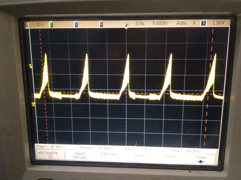 输入电压是VCC=12V,负载是STM32F407,正常的工作电流大约150mA。出现的问题是:上电后,Vout电压呈现波动状态,如下图所示: