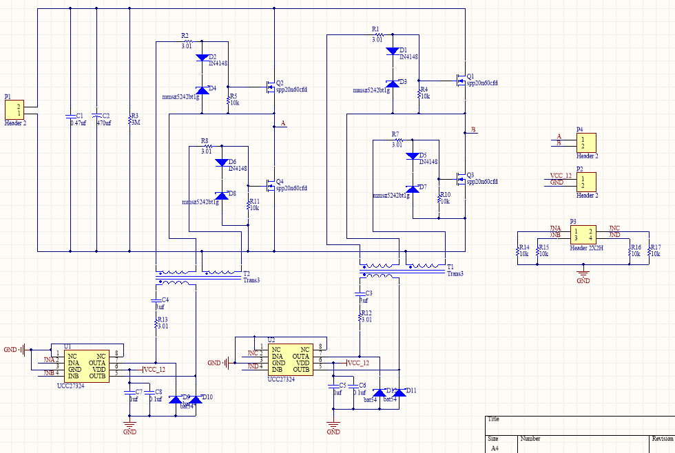 参考的TI全桥移相,自己画的逆变电路如下图,主电路输入电压10V,接了一个纯电阻负载,输出波形如下图1,震荡非常严重,板子有时有吱吱声音。脉冲变压器副边波形如下图3,请前辈们帮忙分析一下原因,怎么解决震荡问题,谢谢,TI逆变电路见附件
