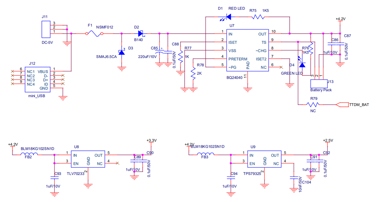 如图所示电路,通过设置 截至电阻 R(PRETERM)即R78 ,从1K调试到10K,按理说阻值越大,能提供的预充电电流越大,即I out越大。但是实际测试中,不仅没有什么效果,反而在几乎没有电的电池或者欠压电池介入后,我的输出Vout只有2.6V左右。这是为啥?为什么输出电压会被拉低?