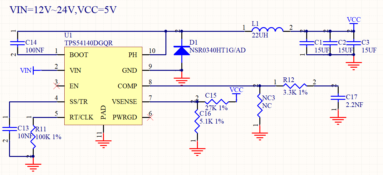 求助:TPS54140 12V输入,5V输出带负载时会降压至3.8V(附原理图)