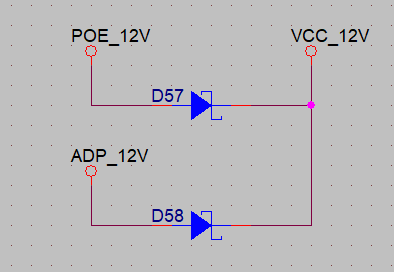 参考PMP40355 设计的POE非隔离输出,单独POE没有问题,但是插上适配器后,POE转换器不工作了,输出端量45V电压。适配器和POE输出各用一个二极管隔开后同时接入板子。