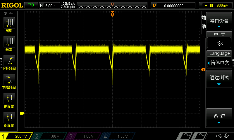 我现在已经解决了纹波的问题,现在是每隔13ms左右电平被拉低一次,电压都是正常输出的