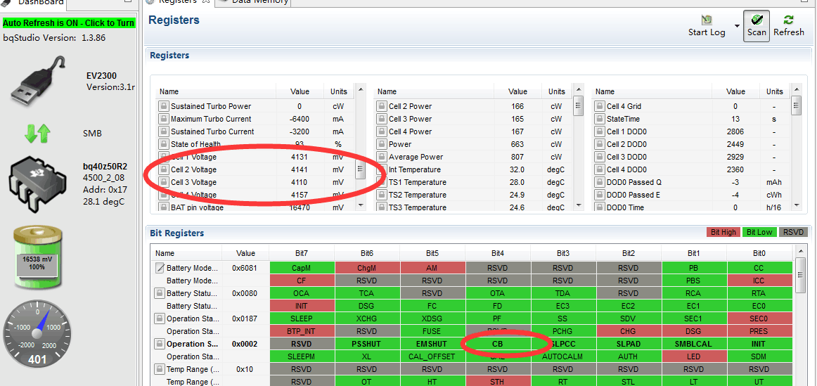 BQ40Z50用于4串设计,电池压差大,但是均衡不开启,使用的是外置均衡,但是CB状态位一直不置高,不知道哪里出现问题,麻烦指导一下