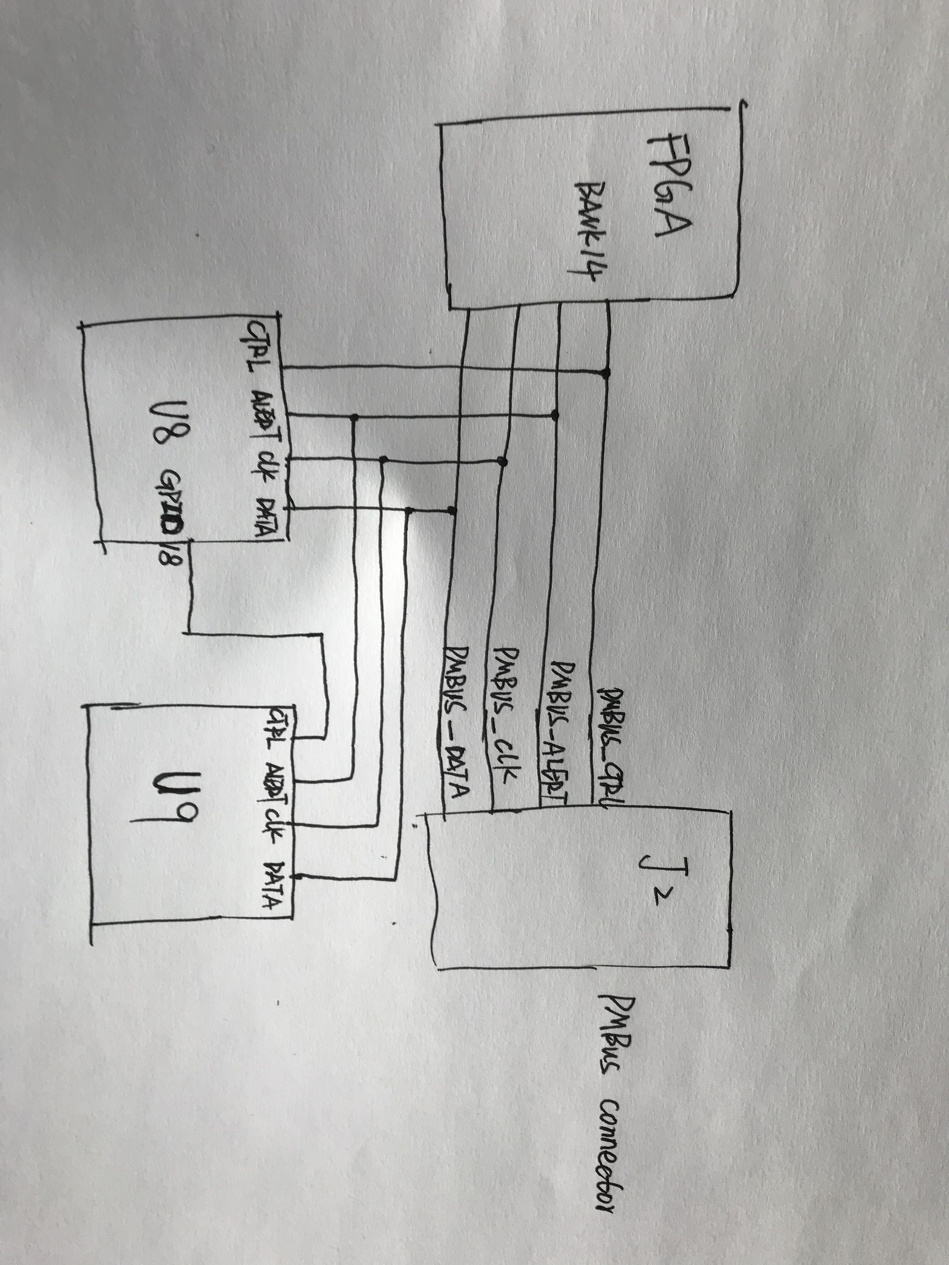 你好!我之前买了一个xilinx的AC701开发板,它的电源管理芯片用的是UCD90120A芯片,我查看了AC701板的原理图。我查看了PMbus连接器J2和FPGA、电源管理芯片U8、U9的连接关系。如下图所示: