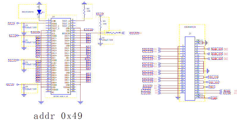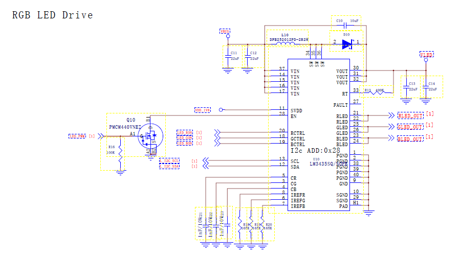我们这个用这个芯片红色输出很暗,寄存器已经配置最大输出电流,已经确认已经配置到寄存器了.原理图如下: