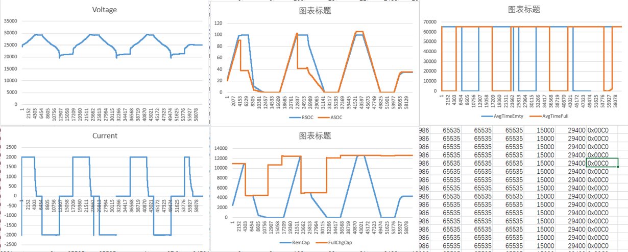 BQ40Z80配置参数:TERM V=19.6V,TERM I=0.6A,由于容量较大,实际容量及电流均按5倍进行衰减,即实际截止电流=3A;