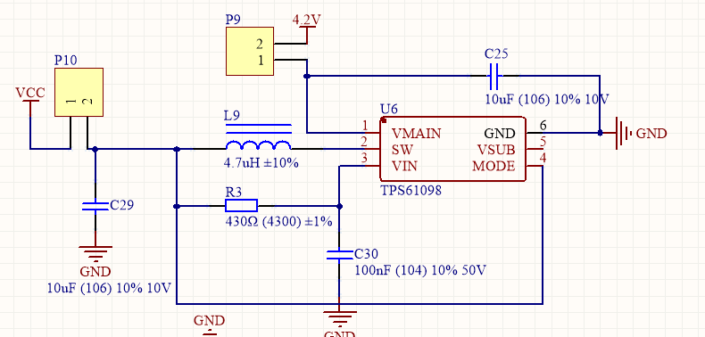 关于TPS61098 ,我才用如下原理,希望得到4.3V的输出,为何我输入3.3V的时候输出也是3.3V.