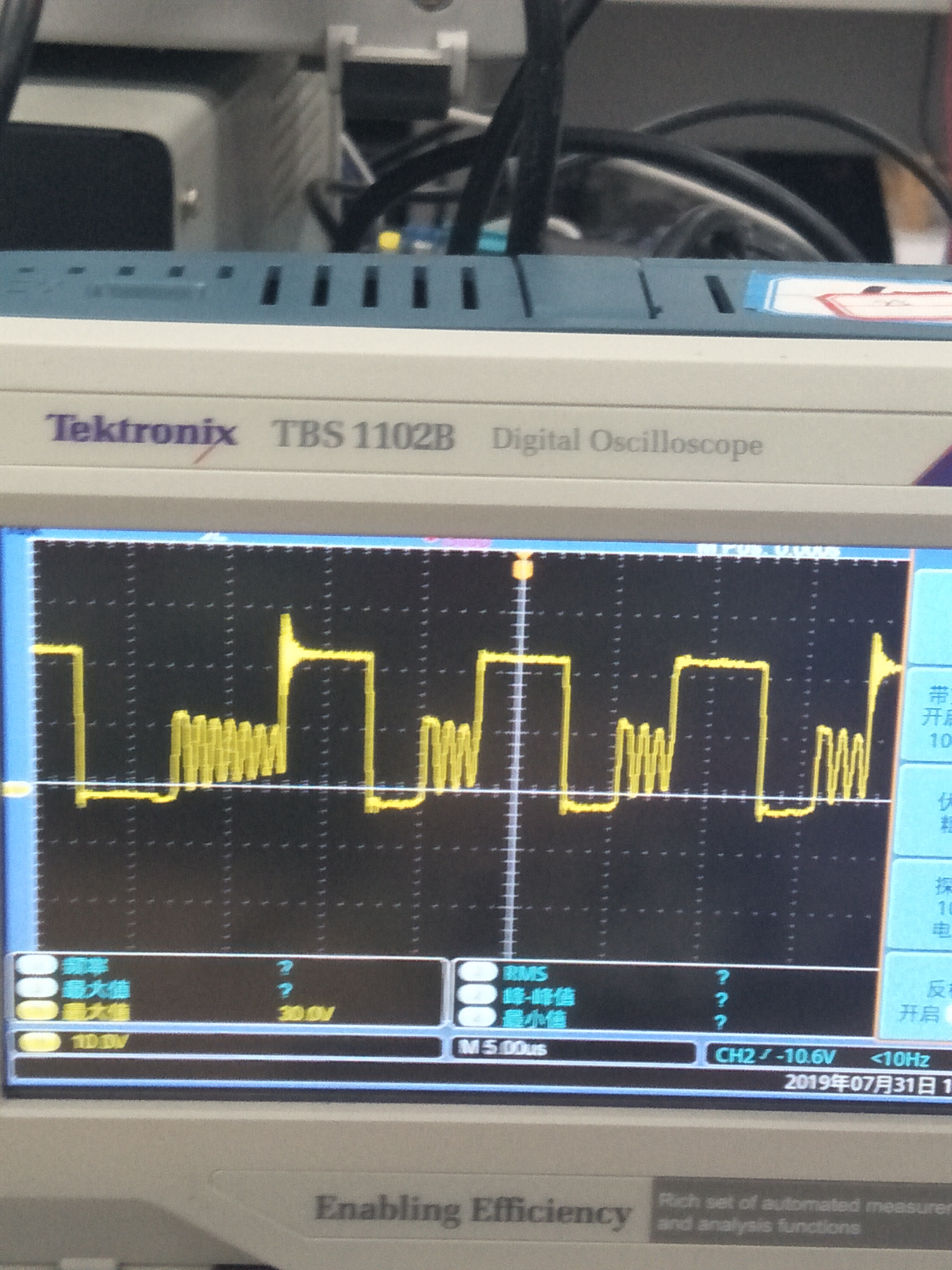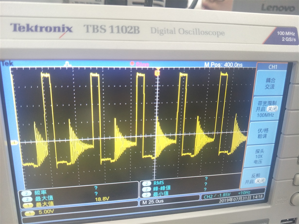 lm5117输出波形如下:一开始(左边图)以为电感不够,而使其工作在DCM模式,于是用了一个大电感,然过变成了右边图谐波频率更大了,这是为什么