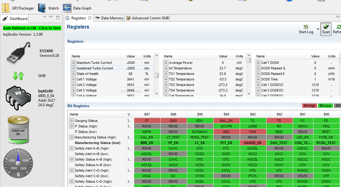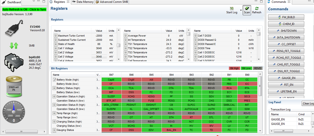但同样的操作用EVM板时,BQ40Z80的FET的Vgs有一个10V的上升