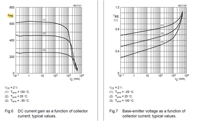(4)NPNVBE和直流增益hFEIc以及温度的关系如下图所示: