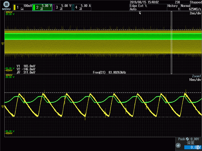 R1=R2=1kR3=500ΩVin=6.5VIo=0.1AΔVo=265mV为例。测试波形如下图所示