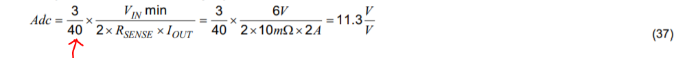 请问一下各位大佬,请问一下TPS40361 datasheet上公式37中间的系数3/40是怎么来的?