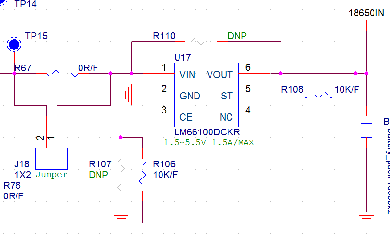 下图是我自己搭建的电路:当LM66100后面接18650时,为什么在电路输入端还能测得电压?