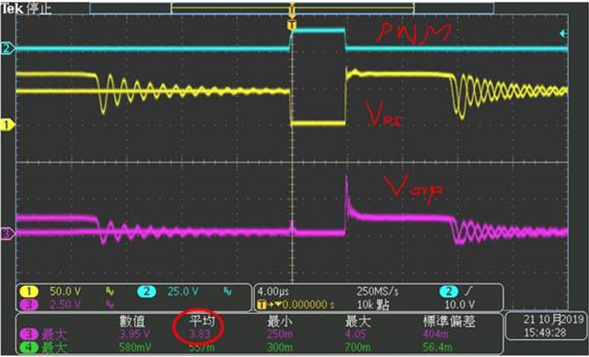 这样的Vvop波形是对的吗?最高那根已顶到OVP的3.75V