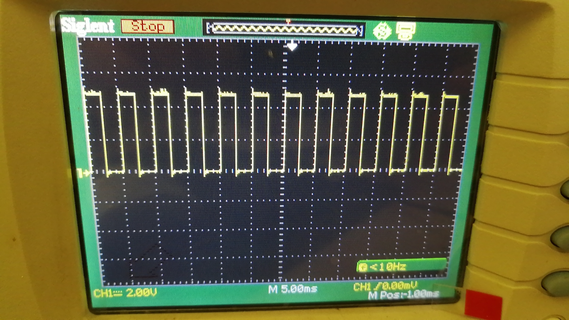 下图是PIN10/PWM引脚的波形,频率200HZ,占空比50%。
