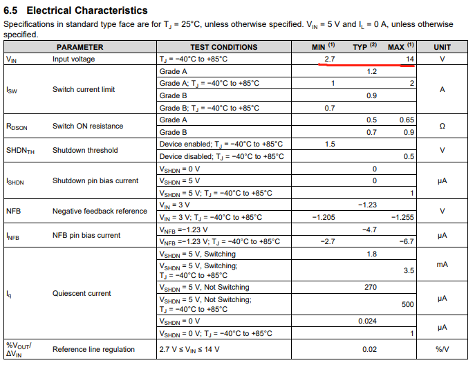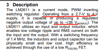 比如一个芯片数据手册说,36V开关允许Vin至Vout的差分电压高达34V,我输入电压5V,意思是我通过外接的调节电阻,可以实现最小-39v-最大0V的输出吗?