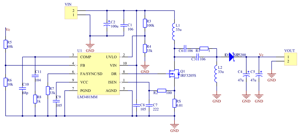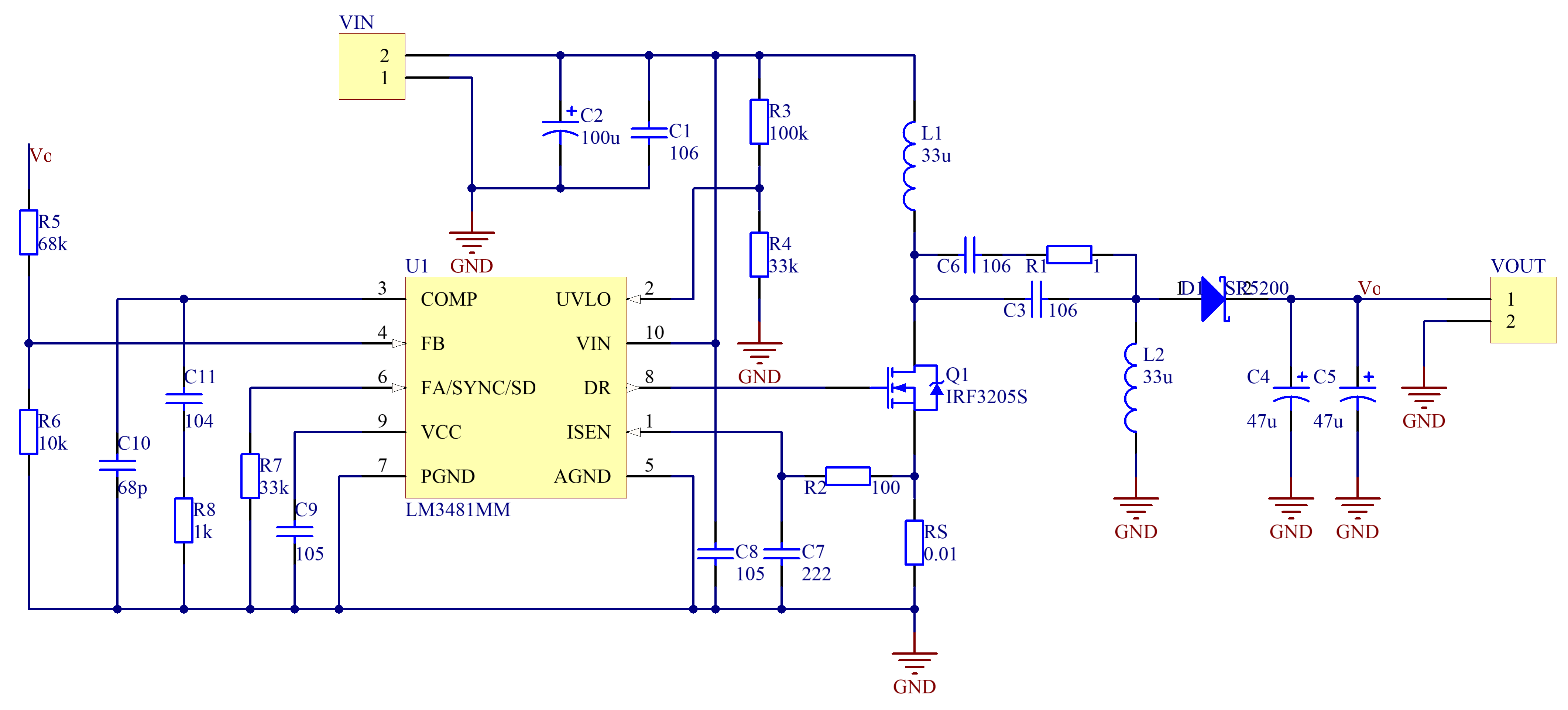 使用LM3481搭建了一个6-16V输入、10V/2A输出的SEPIC转换器,所设计原理图如下,参数取值基本上根据webench设计而来。上电后空载正常,而只要带了一点点负载电路就开始嗡嗡叫,负载越重频率越高,但在所设计的2A输出电流下仍然存在叫声。示波器观察的输出电压存在很大的低频纹波。
