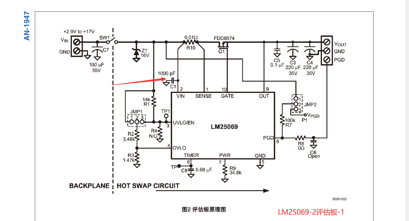 热插板IC,LM5069电源引脚退藕电容,手册与评估板手册资料矛盾,求正解。