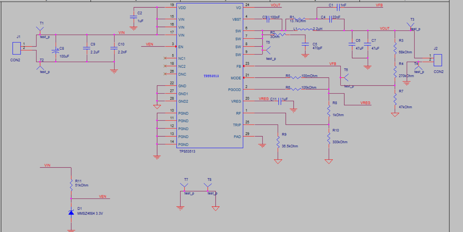 原理图如上所示,设计输入最高电压是18V,输出最大电流5A,输出电压5V。