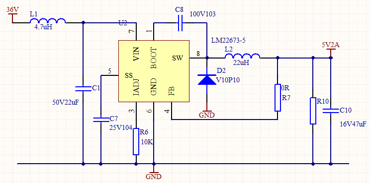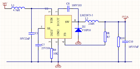 输入电压24V以下没问题,30V以上时带负载通电LM22673直接就击穿了,PIN678短路。