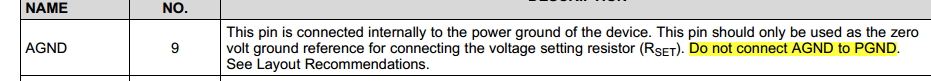 这里AGND和PGND连在一起了,但是手册里明确说了AGND和PGND要隔离开,见图2