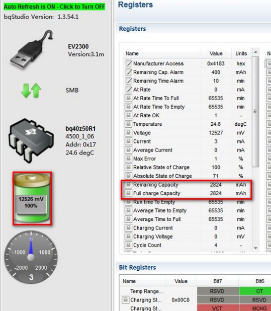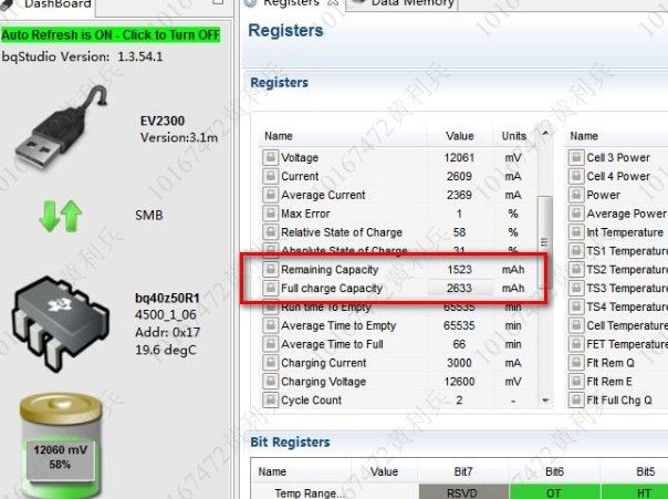 正常满充容量应该是4000mAh,界面显示(寄存器值)只有2824mAh,电压也接近12.6满充电压,实际放电的时候电池也能放出4000mAh的电量,在放电末端(放空的时候)容量又跳回了接近4000mAh。跳变是什么原因?怎么尽可能的避免这个问题?出现跳变了怎么解决,因为系统会读取剩余容量值,如果达不到系统要求的最低值,系统就会上报电池故障,影响系统其它功能。谢谢!