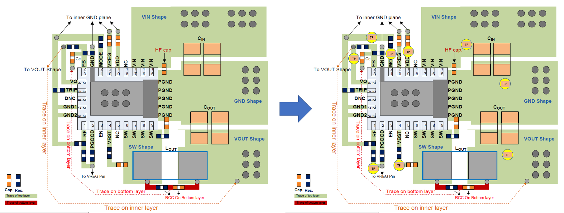 I think should added test point at source input voltage and end output voltage side for ICT only, right?