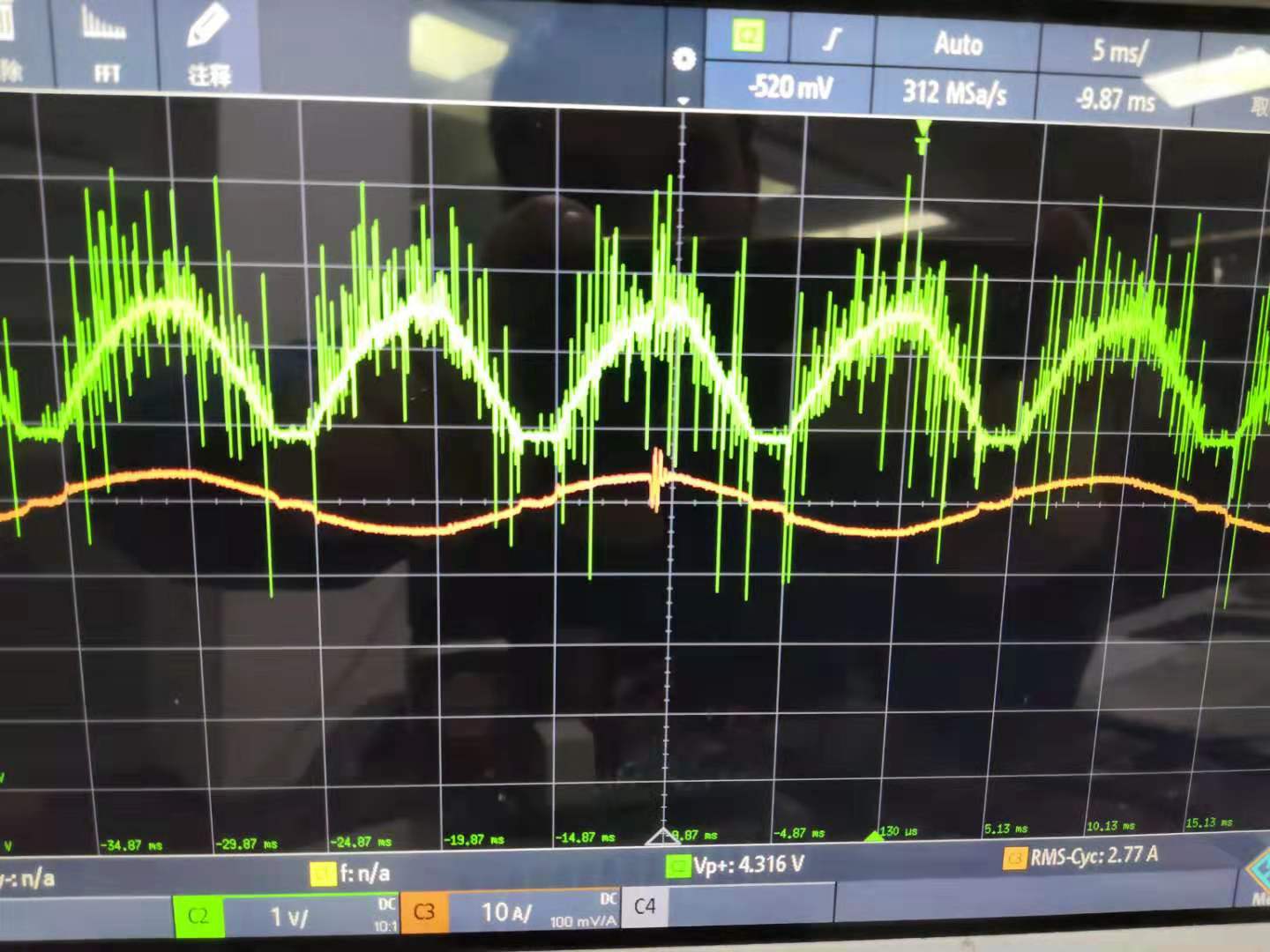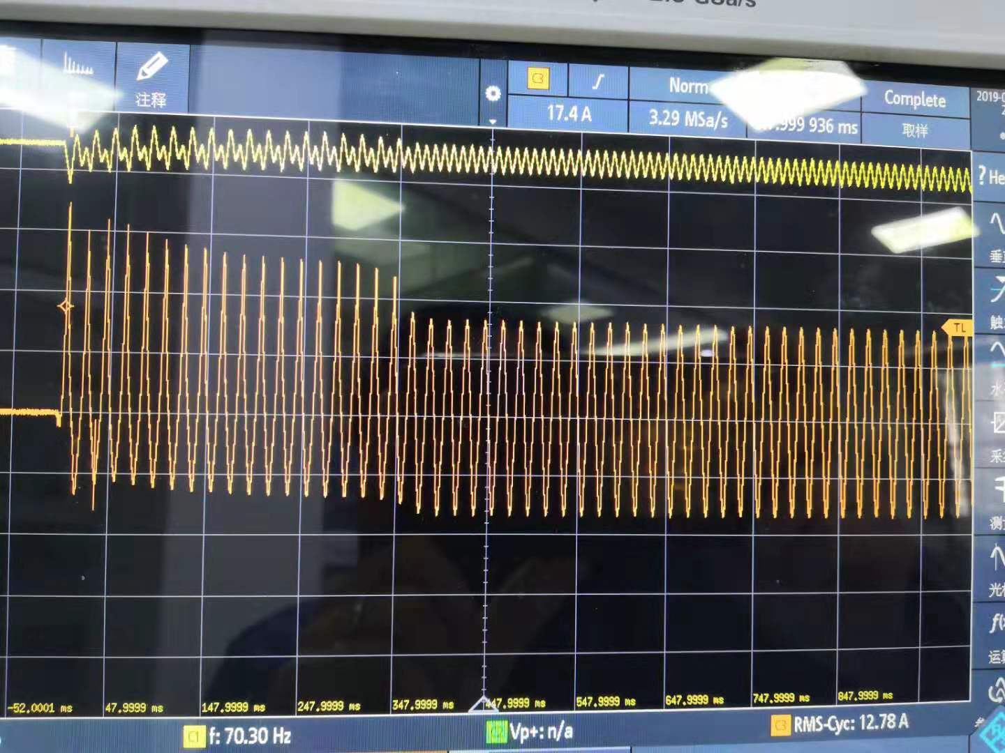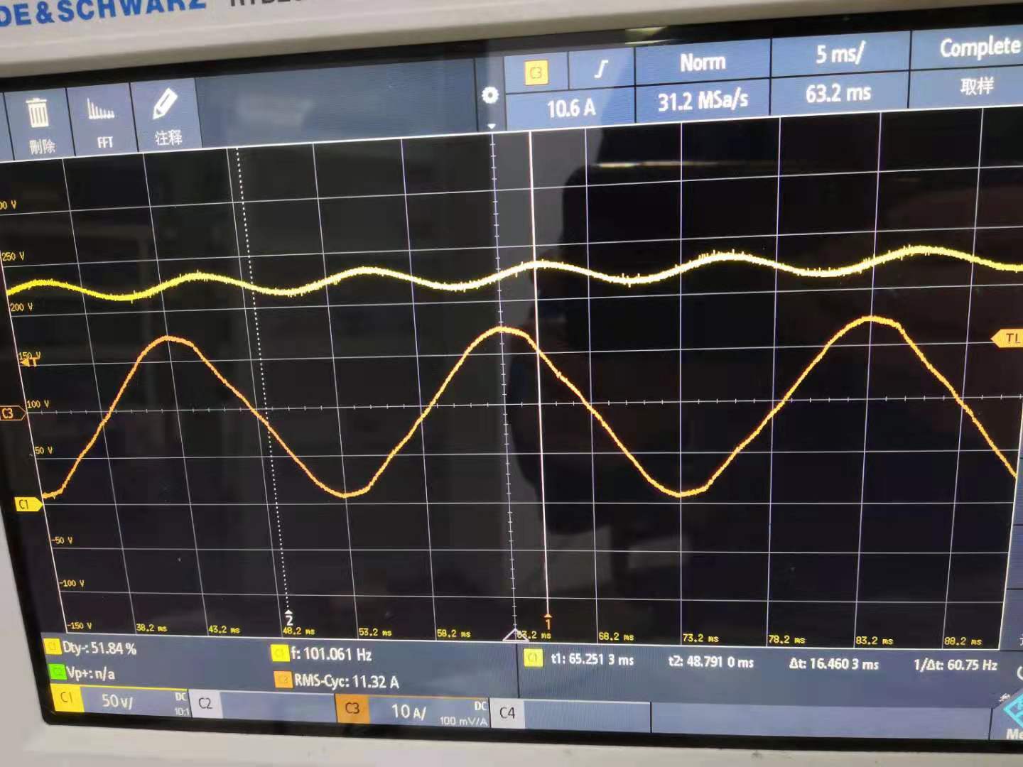 当负载大于1100W时,电源噪音消失,电流波形正常,无异常。