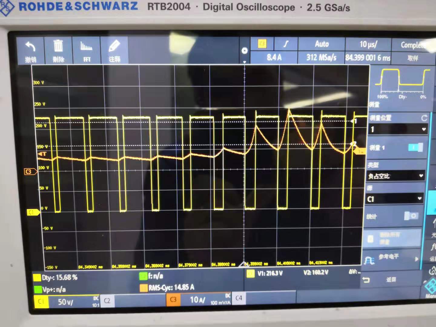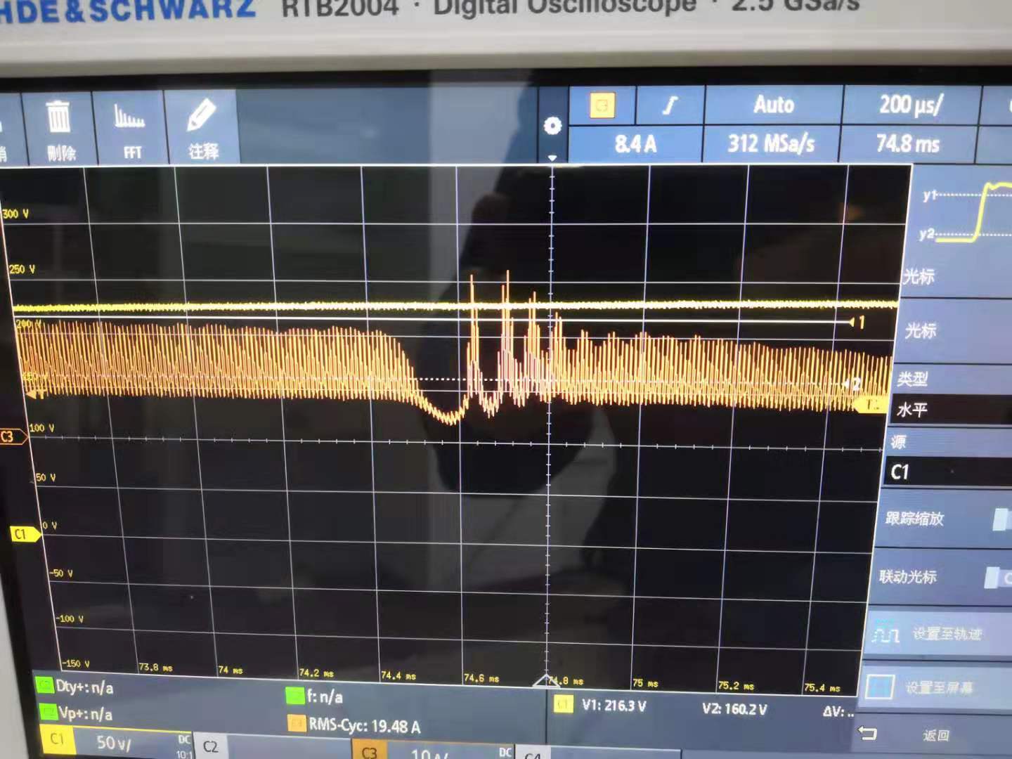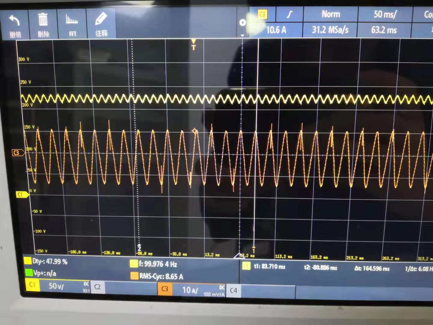 当负载大于1100W时,电源噪音消失,电流波形正常,无异常。