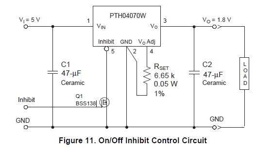 我们用2个PTH04070W电源模块将5v电源转换为1.2V和3.3V给TMS320C6747供电,TMS320C6747要求1.2V先上电,然后3.3V再上电。请问使用PTH04070W模块上的Inhibit管脚能否实现上电顺序控制的功能。第一个模块输出的1.2V电压能否控制第二个3.3V的模块呢,多谢!