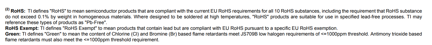 关于ROHS,TI的文档是有描述的,在上面的范围内,但具体的含量表,是没有提供的。
