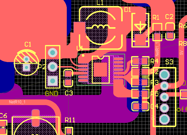 我在尝试使用TPS55340芯片进行升压,12.07V的输入,输出电压为11.94V,我的RSH为277.5k,RSL为10K,按道理应该输出35V左右的电压才对,FB脚测量电压为0.4V,SW脚的波形为高电平与小段类似于消顶的正弦波的混合。请问这是怎么回事,下面的图为PCB和SW上的波形