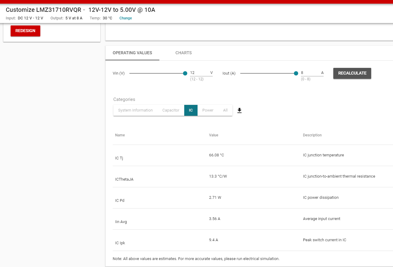 我利用WEBENCH® POWER DESIGNER设计的这两个芯片的分析结果如下两图所示