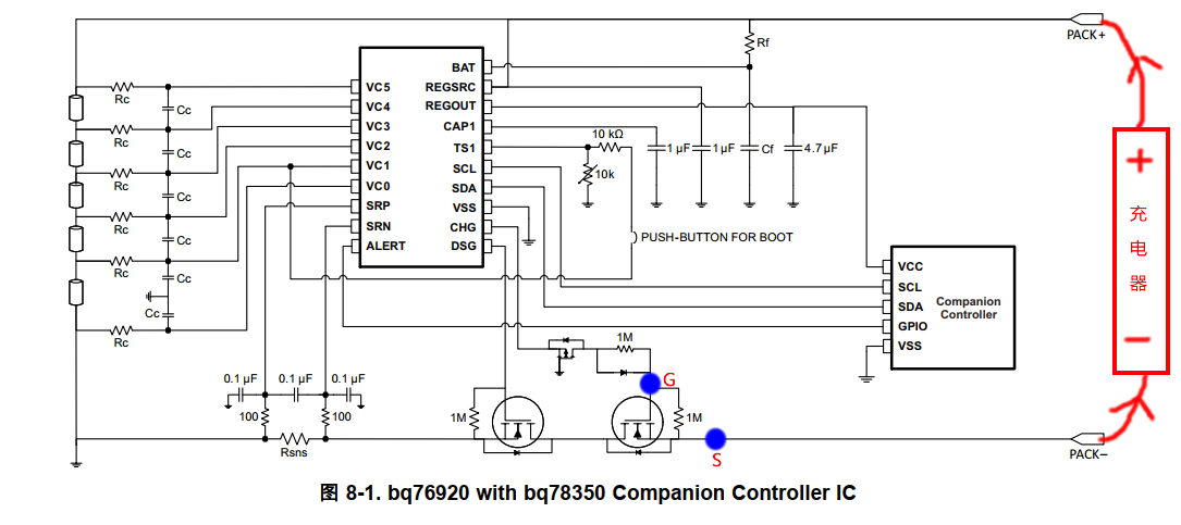 当充电时 怎么理解CHG mos打开,CHG信号给H,那么G处为H,但是mos的S 是P-,怎么能够导通,意思是G、S两极不共地,怎么能导通