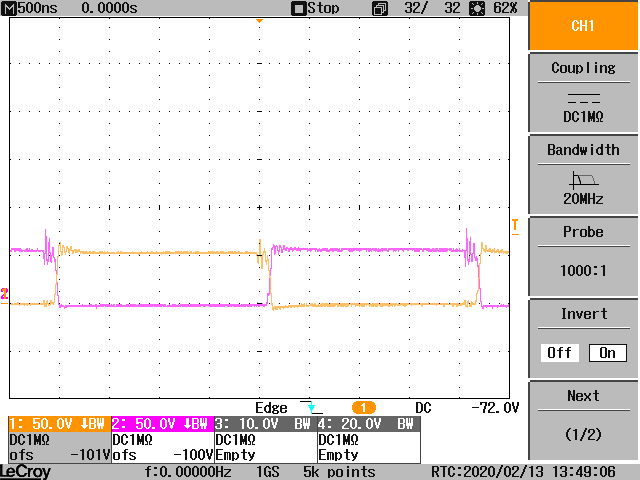 上圖是LLC一次側開關DS端電壓和二次側二極體電壓