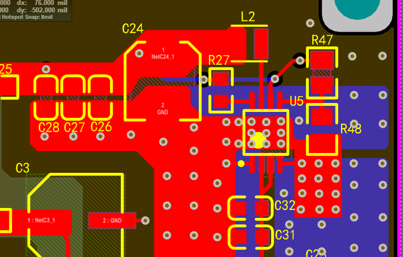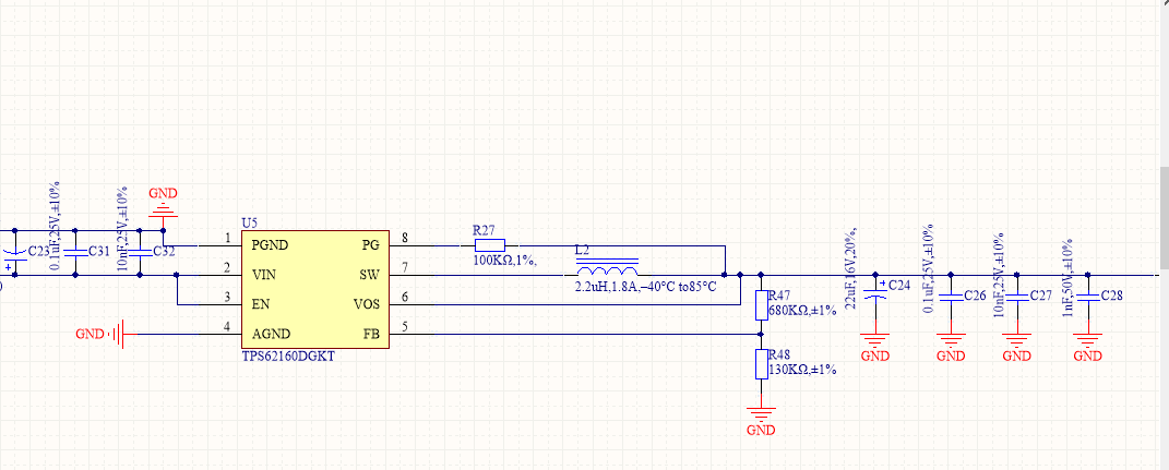 带1A负载的时候,直接测电容C24两端电压多少伏,用示波器测量,别用万用表。