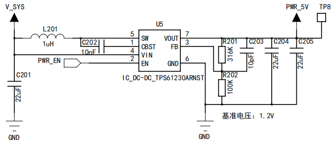电路如图所示,V_SYS是电池电源输入端,电压在3.2V-4.2V之间。(实验时用的稳压电源,电压3.6V,限流5A。)在输出端加电子负载时,负载电流超过1.08A,输出电压被拉低,稳压电源的电压也会被拉低。请教一下负载电流不足是什么地方导致的呢?