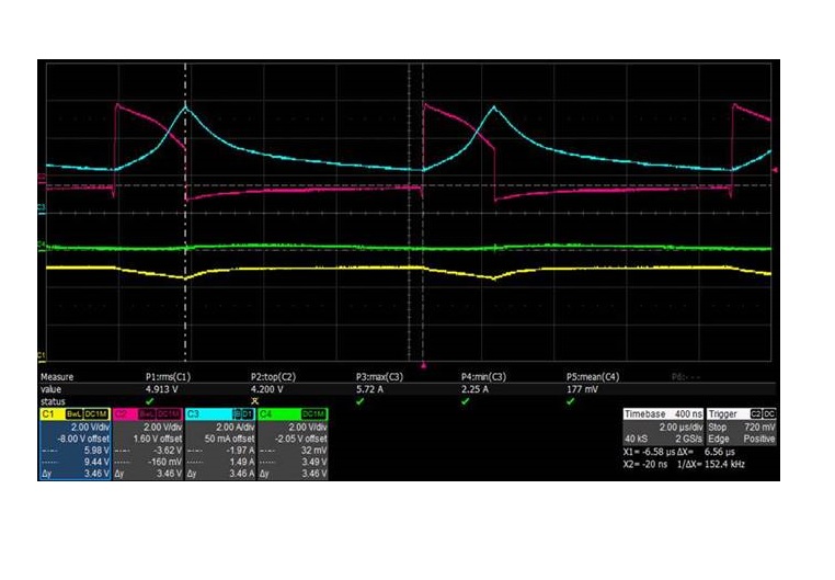 Vin = 5V(CH1 : Vin ; CH2 : Vsw CH3 : IL CH4 : Vo1)